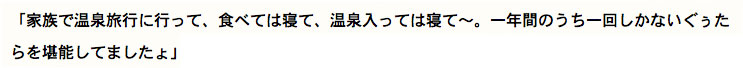 家族で温泉旅行に行って、食べては寝て、温泉入っては寝て~